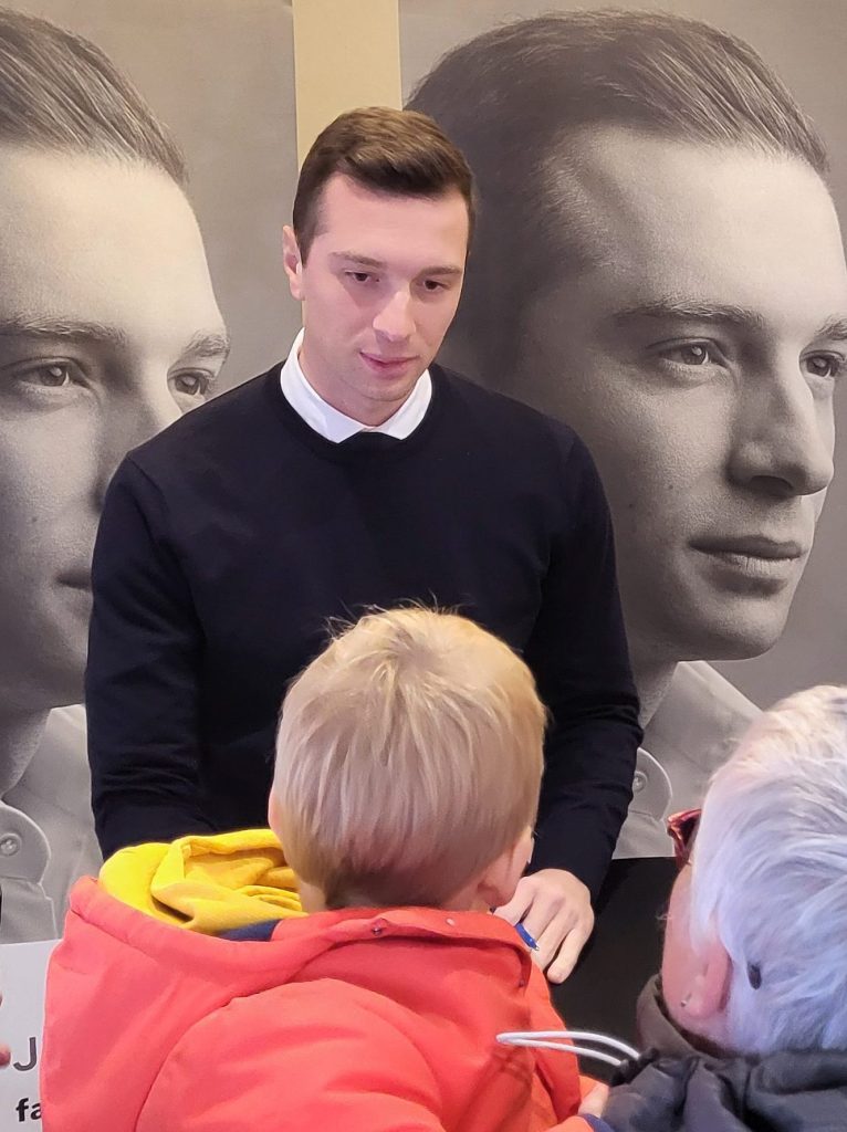 Jordan Bardella at a book-signing for his autobiography in Beaucaire, Nov 2024